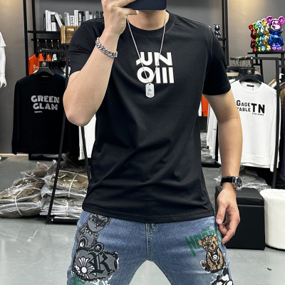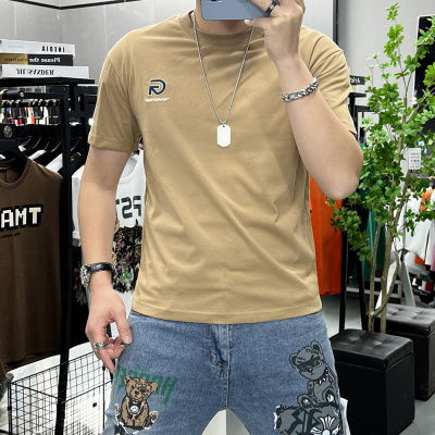 夏季新款字母时尚短袖T恤男士圆领半袖上衣丝光棉修身潮ins欧洲站