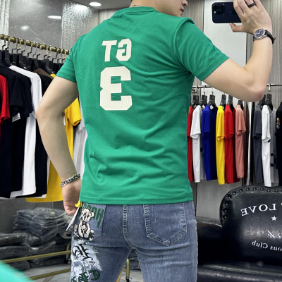 欧洲站新款简约字母圆领半袖体恤衫夏季短袖T恤男士上衣丝光棉潮