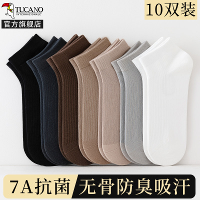 [7A抗菌]袜子男士短袜夏季薄款防臭吸汗棉袜男生不掉跟隐形袜夏天