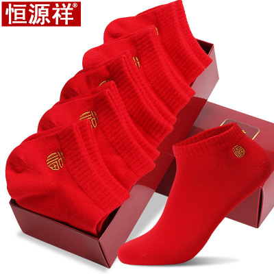 恒源祥男女士大红色船袜本命年结婚喜庆福袜子 隐形袜