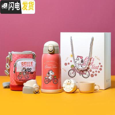 三维工匠保温杯子儿童水壶带吸管小学生宝宝两用316不锈钢带盖便携 巴黎贝拉红色礼盒装()