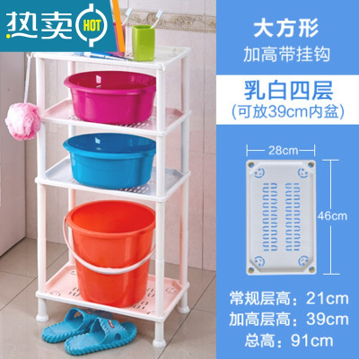 敬平浴室置物架卫生间收纳三角塑料脸盆架子厕所洗手洗澡间落地式家用 白 M.大号方形加高