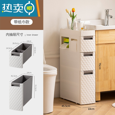 敬平18CM卫生间夹缝置物架塑料落地式多层厕所缝隙架浴室马桶边收纳柜 7008纸巾款-3层浴室置物架