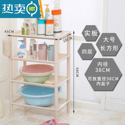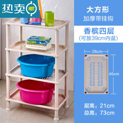 敬平浴室置物架卫生间收纳三角塑料脸盆架子厕所洗手洗澡间落地式家用 香槟色 M.大号方形