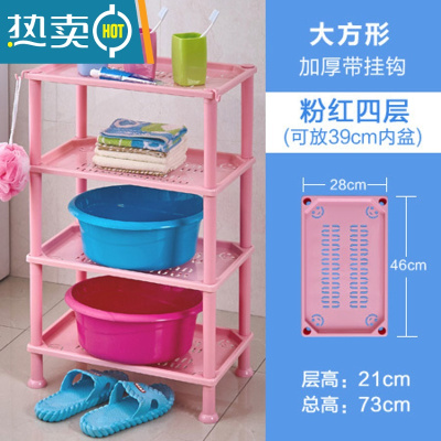 敬平浴室置物架卫生间收纳三角塑料脸盆架子厕所洗手洗澡间落地式家用 粉红色 M.大号方形