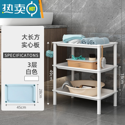 敬平浴室置物架子卫生间洗脸盆洗漱台厕所塑料储物收纳三角落地式盆架 大长方白色3层