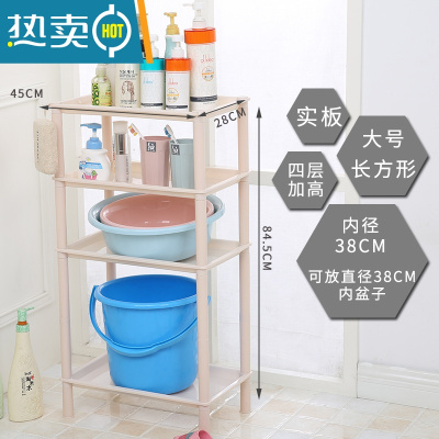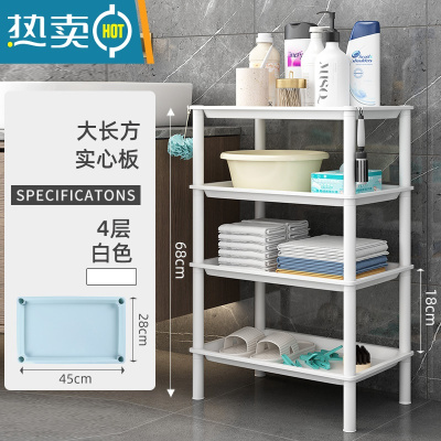 敬平浴室置物架子卫生间洗脸盆洗漱台厕所塑料储物收纳三角落地式盆架 大长方白色4层
