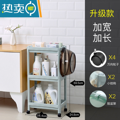 敬平浴室厨房洗手间置物架多层收纳架厕所卫生间器落地式塑料储物架 蓝色三层(收藏送轮子)升级款