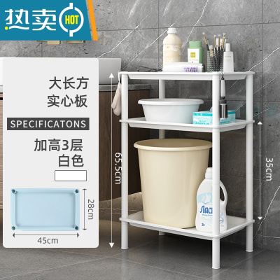 敬平浴室置物架子卫生间洗脸盆洗漱台厕所塑料储物收纳三角落地式盆架 大长方白色加高3层