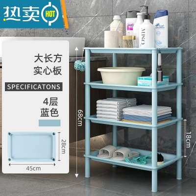 敬平浴室置物架子卫生间洗脸盆洗漱台厕所塑料储物收纳三角落地式盆架 大长方北欧蓝4层