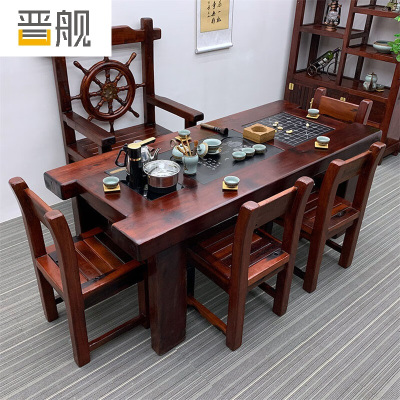 晋舰 茶台老船木茶桌椅组合中式家具功夫小茶几茶艺茶具套装一体2.0米