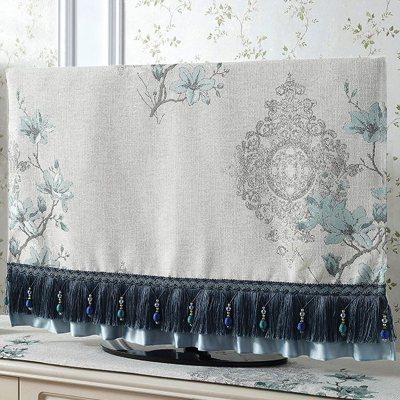 新中式55寸液晶电视机盖布防尘罩60寸曲面屏挂式欧式家用布艺32寸 芳华蓝色电视机罩 52英寸(宽125*高75)