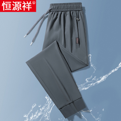 恒源祥男士冰丝休闲裤男款夏季薄款运动裤弹力宽松直筒速干长裤子