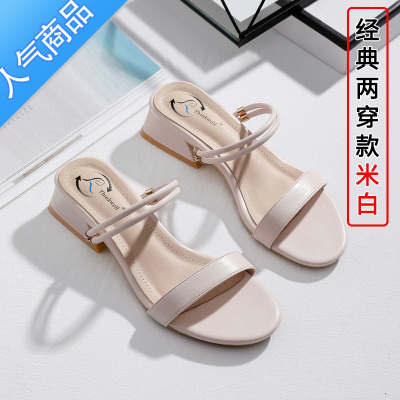 SUNTEK两穿凉鞋女夏配裙子时尚外穿低跟粗跟凉拖鞋法式仙女风小码女鞋子