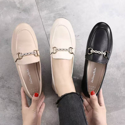 真皮豆豆鞋女新款复古百搭孕妇瓢鞋软皮舒适春秋平底软底单鞋