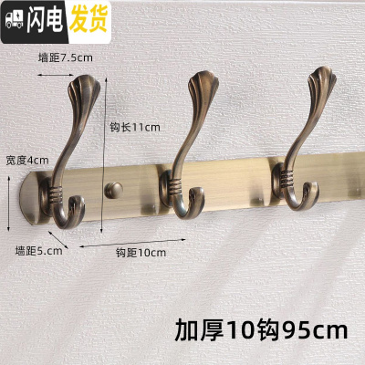 三维工匠衣服挂钩墙壁挂衣架欧式衣帽钩不锈钢后排钩浴室免打孔墙上粘钩 红古铜色加厚[10钩]95cm