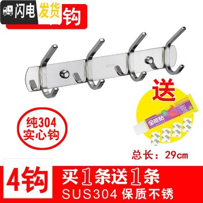 三维工匠304不锈钢衣钩挂衣钩壁挂勾排钩衣帽钩浴室卫生间厨房免打孔挂钩 304双钩4钩[送同款]