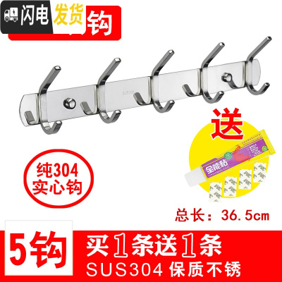 三维工匠304不锈钢衣钩挂衣钩壁挂勾排钩衣帽钩浴室卫生间厨房免打孔挂钩 304双钩5钩[送同款]