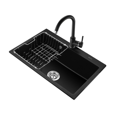 欧琳水槽S106黑色石英石水槽单槽台下盆厨房洗菜盆水槽大单槽