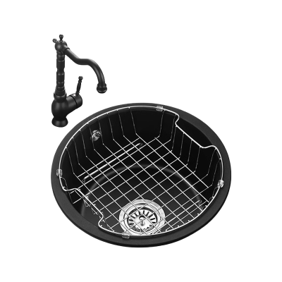 欧琳黑色石英石水槽单槽圆形水槽厨房洗菜盆水吧台水槽S101-01