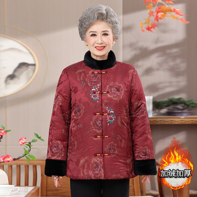 新款金丝绒领子奶奶装加绒棉衣外套女冬季保暖老人家棉袄女短款冬