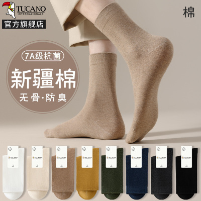 [7A抗菌]啄木鸟袜子男士中筒袜秋冬款棉袜无骨防臭2024冬男生长袜冬天