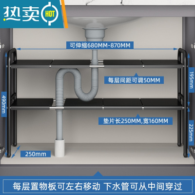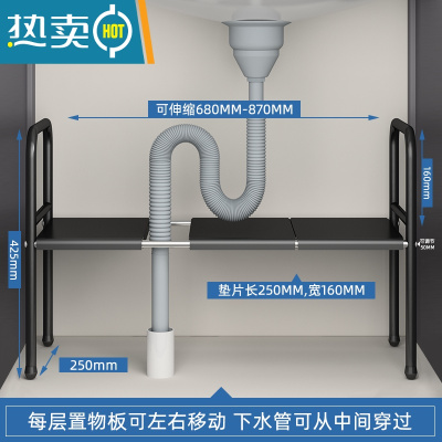 敬平伸缩浴室橱柜内分层收纳洗漱洗手台下整理架子 烤漆黑单层[长度可伸缩]送3块板浴室置物架