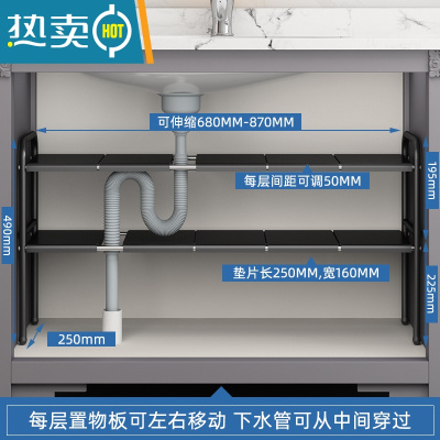 敬平伸缩浴室橱柜内分层收纳洗漱洗手台下整理架子 烤漆黑双层[长度可伸缩]送8块板浴室置物架