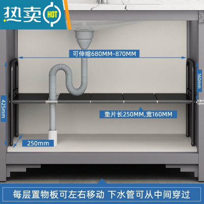 敬平伸缩浴室橱柜内分层收纳洗漱洗手台下整理架子 烤漆黑单层[长度可伸缩]送5块板浴室置物架