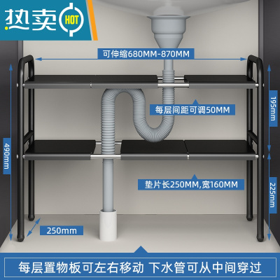 敬平伸缩浴室橱柜内分层收纳洗漱洗手台下整理架子 烤漆黑双层[高度长度可调]送6块板浴室置物架