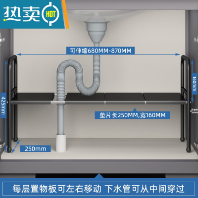 敬平伸缩浴室橱柜内分层收纳洗漱洗手台下整理架子 烤漆黑单层[长度可伸缩]送4块板浴室置物架