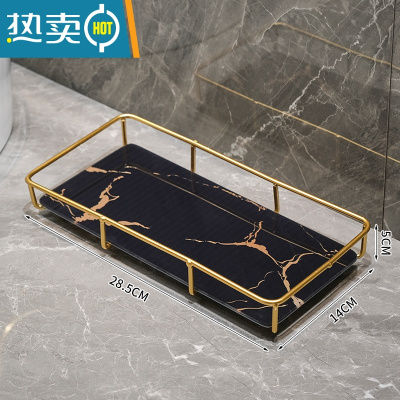 敬平卫生间厕所浴室洗漱台化妆品盒收纳架置物架洗手台轻奢风桌面托盘 黑色金纹托盘601[小号]浴室置物架