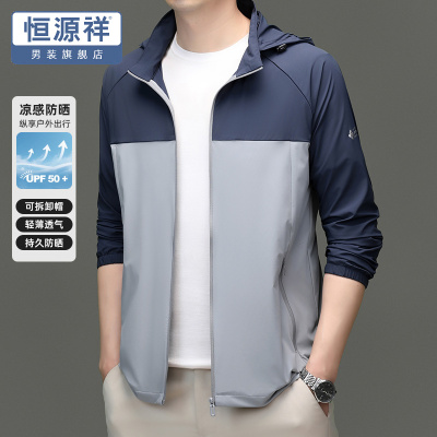 恒源祥防晒服男夏季薄款防紫外线户外骑行钓鱼可拆卸帽防晒衣外套