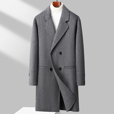 秋冬新款男士韩版修身双排扣纯手工双面呢大衣中长款大码男装潮流