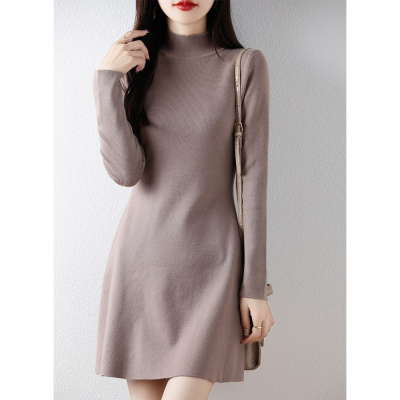 半高领针织连衣裙女秋冬纯色修身内搭中长款包臀裙显瘦毛衣裙子