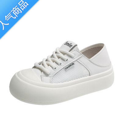 SUNTEK丑萌小白鞋女夏季新款chic小众厚底透网大头面包鞋圆头学生板鞋女