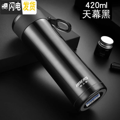 三维工匠304不锈钢保温杯ins男女简约清新商务泡茶杯学生便携水杯子 天幕黑