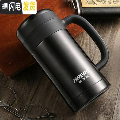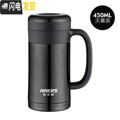 三维工匠保温杯带手柄男大容量304不锈钢真空泡茶杯定制水杯子450 天幕黑