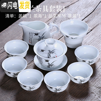 三维工匠白瓷功夫茶具套装家用复古玉瓷泡茶盖碗茶壶茶杯陶瓷礼品 兰茶具套装
