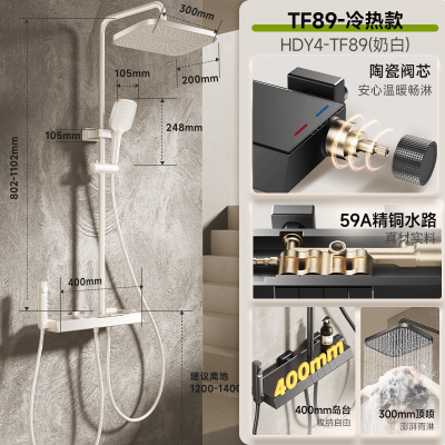 惠达(HUIDA)- TF89 沐浴花洒套装卫生间钢琴按键枪灰色置物台增压沐浴器