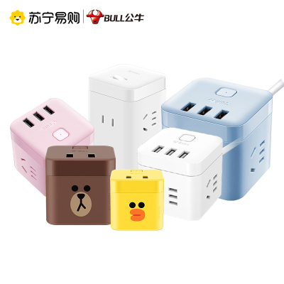 公牛USB接口插座面板转接头插头魔方插线板多功能插板无线家用充电器插排转换器带线接线板排插