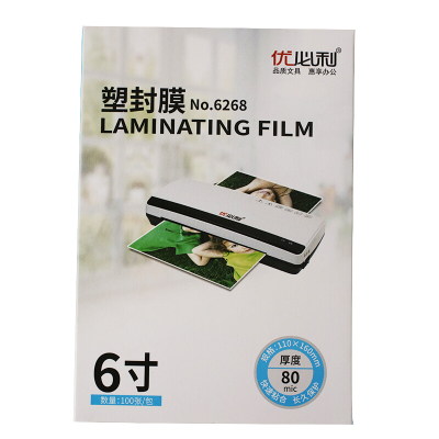 优必利 护卡膜/塑封膜 透明高清照片塑封膜 相片护卡膜 过塑膜 6寸 厚80mic/100张 6268