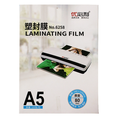 优必利 护卡膜/塑封膜 透明高清照片塑封膜 相片护卡膜 过塑膜 A5 厚80mic/100张 6258