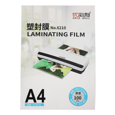 优必利 护卡膜/塑封膜 透明高清照片塑封膜 相片护卡膜 过塑膜 A4 厚100mic/100张 6210