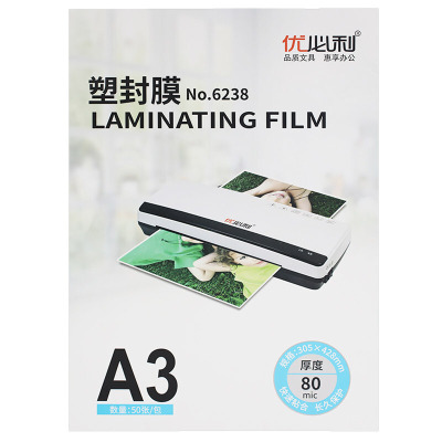 优必利 护卡膜/塑封膜 透明高清照片塑封膜 相片护卡膜 过塑膜 A3 厚80mic/50张 6238
