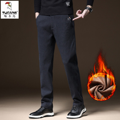 啄木鸟2025秋冬季新款磨毛商务休闲长裤男士宽松直筒裤男款长西裤