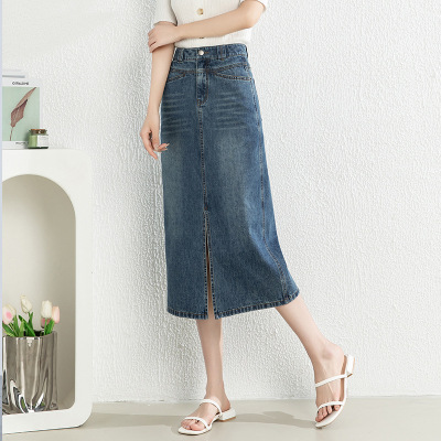 YIBUSHENG复古蓝色高腰显瘦a字半身裙女2021年春季新款韩版中长款牛仔裙子