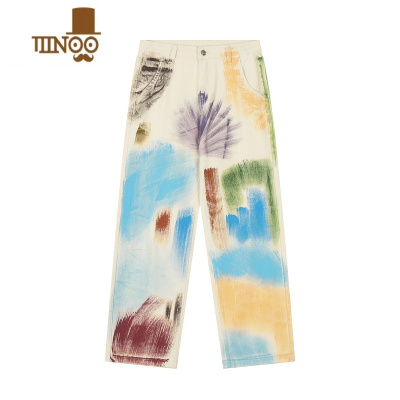 YANXUe020水洗涂鸦牛仔裤高街直筒休闲裤美式新款感裤子男女长裤潮