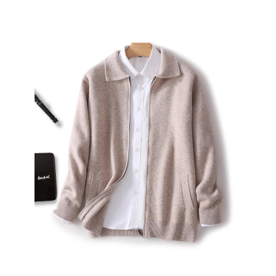 100全羊毛开衫男士秋冬季新款宽松外穿翻领加厚拉链大码外套
