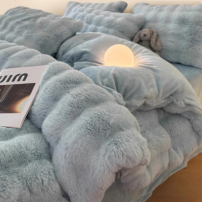 兔毛牛奶绒床上四件套新款秋冬季双面冬季加绒珊瑚绒床单被套